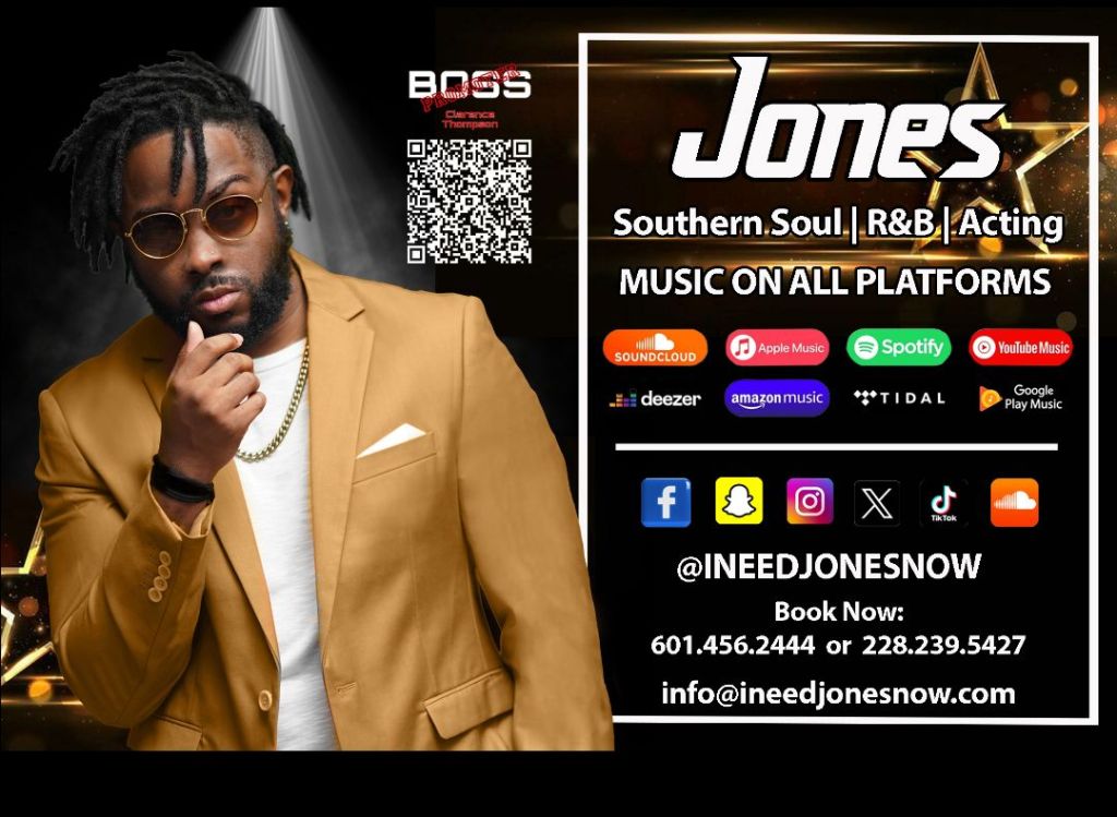 Jones is an emerging soul and R&B artist whose music is a fusion of raw emotion and smooth, contemporary rhythms. With a voice that can glide effortlessly from deep, soulful tones to electrifying falsettos, Jones has captured the attention of both fans and industry insiders. His lyrics resonate with vulnerability and authenticity, telling stories of love, heartbreak, and self-discovery that are deeply personal and universally relatable. As he elevates with each new release, the buzz around Jones is palpable—he’s on the verge of his big break, ready to take the world by storm with a sound as timeless as it is fresh.