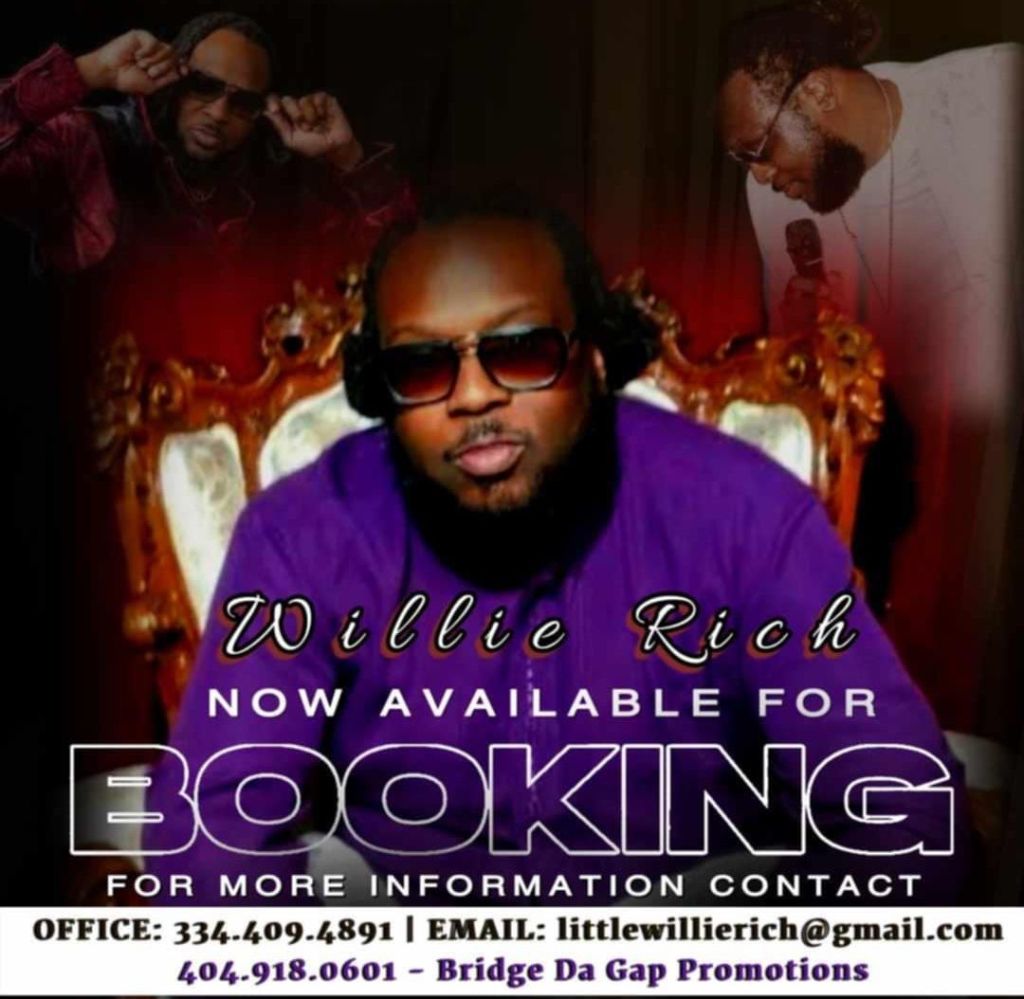 Willie Rich was born and raised in Memphis, Tennesse by his Mother who loved Gospel music, and his Pops who loved the blues. During his teenage years in the 90s, he was into RnB and Hip Hop. However, during his time at Tuskegee University, he was exposed to African American choral music and Jazz through the Golden Voice program. Now, as a composer, musician, singer, and songwriter, Willie Rich’s passion lies in Southern Soul music. Willie Rich is currently being promoted by Bridge Da Gap Promotions, a Georgia based operation with strong connection to DJ organizations such as Rock da Block, Team Fleet DJs and The Dream Team. Through various radio stations, Internet DJ shows and Trail Ride Organizations; Bridge Da Gap Promotions has managed to get Willie Rich on podcast interviews and placement with Nationally recognized charts such as The Southern Soul Influencer , Daddy B. Nice and El Martello’s Hot Pic’s!